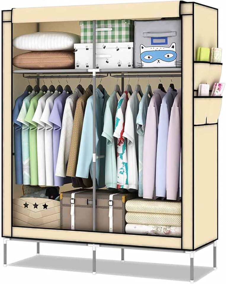 Temporary Wardrobe, Stable Fabric Cabinet Clothes Closet Foldable Cabinet Storage Organizer for Clothes, Bags, Toys, Shoes, Living Room(Size:167 * 108 * 44CM,Color:C) (C 167 * 108 * 44CM)