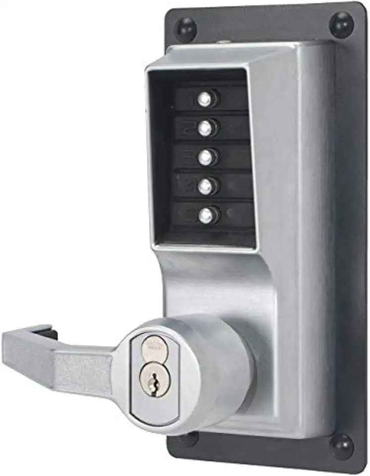 Kaba Simplex LP1000 Series Metal Mechanical Pushbutton Exit Trim Lock with Lever, Combination Entry and Key Override, R/C Schlage, Core Not Included, Satin Chrome Finish, Left Hand