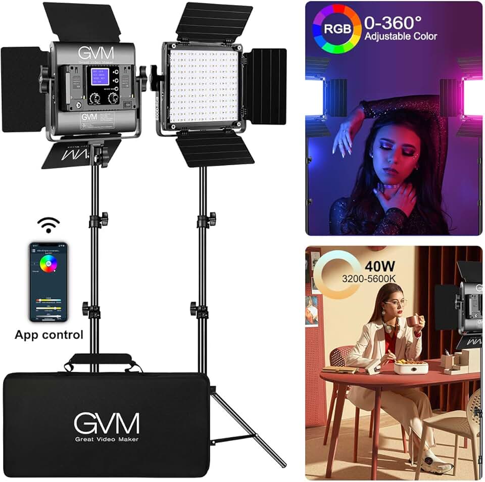 GVM RGB Led Video Light, 2PCS Video Lighting Kit with APP Control, 40W Photography Lighting Led Panel Light with 8 Kinds of The Scene Lights for Studio YouTube, 3200K-5600K, CRI 97+