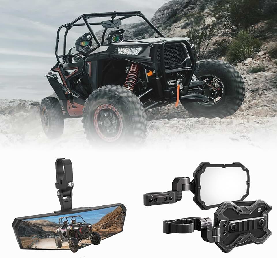 KEMIMOTO UTV Rear View Mirror and CNC Aluminum UTV Side Mirrors with Integrated Adjustable Light Mount Fits 1.65-2 inch Roll Cage Compatible with Polaris RZR Can Am Maverick X3