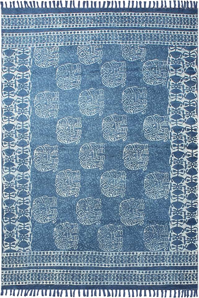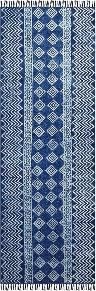 Runner - Kilim Rug 5x10 Area Rug Blue & Beige Cotton Dhurrie Washable Rug Indoor Outdoor Rug Flatweave Rug High Traffic Area Home & Foyer Corridor Hallway & Stair Runner