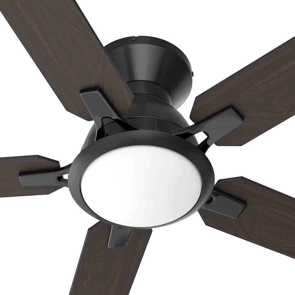 Smart Low Profile Ceiling Fan with Lights, DC 10 Speeds Smart Ceiling Fan with Remote, Compatible with Alexa, Siri & Google Home & APP, 3 Light Colors Dimmable Flush Mount Ceiling Fan, Black, 52’’