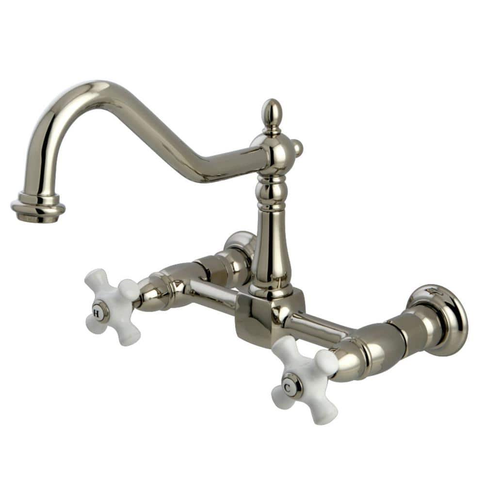 Kingston Brass Heritage 2-Handle Wall-Mount Standard Kitchen Faucet in Polished Nickel