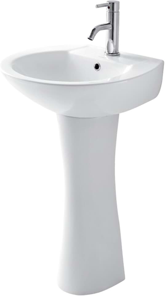 One Piece Freestanding Pedestal Sink, Ceramic Pedestal Sink for Bathroom, Glossy White Pedestal Sink, Pedestal Bathroom Sink with Overflow, Home Balcony Outdoor (Material : 57.5 * 49.3 * 80.5cm)