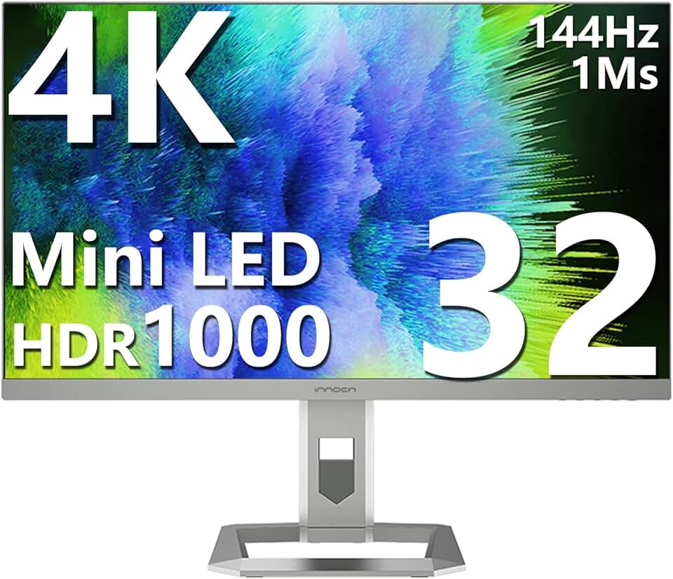 INNOCN 32" Mini LED 4K UHD 3840 x 2160 Computer Gaming Monitor 144Hz 1ms IPS HDR1000 HDMI 2.1 Monitor, 99% DCI-P3, USB Type-C Connectivity, Pivot/Height Adjustable Stand - 32M2V