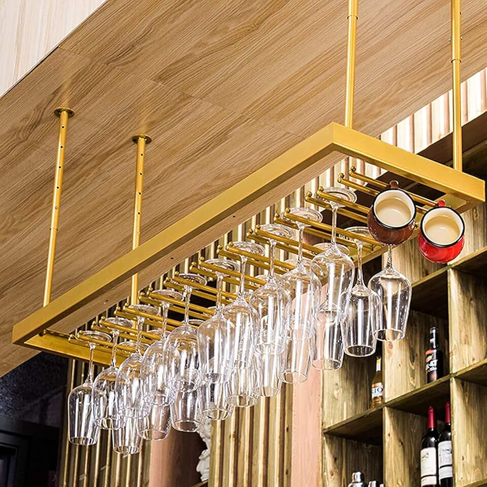 Wine Rack Wall Mounted - Ceiling Mounted Hanging Wine Bottle Holder, Hanging Wine Bottle Holder Metal, Shelf Champagne Glass Rack, Bar Home Decor, Gold The New Fashionable