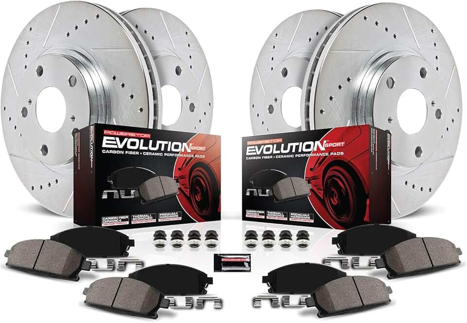 Power Stop K2829 Front and Rear Z23 Carbon Fiber Brake Pads with Drilled & Slotted Brake Rotors Kit