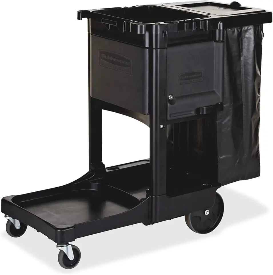 Rubbermaid Commercial Products-1861430, Executive Series Janitorial and Housekeeping Cleaning Cart with Locking Cabinet, Wheeled with Zippered Black Vinyl Bag, Black , 38" x 21.8" x 46"