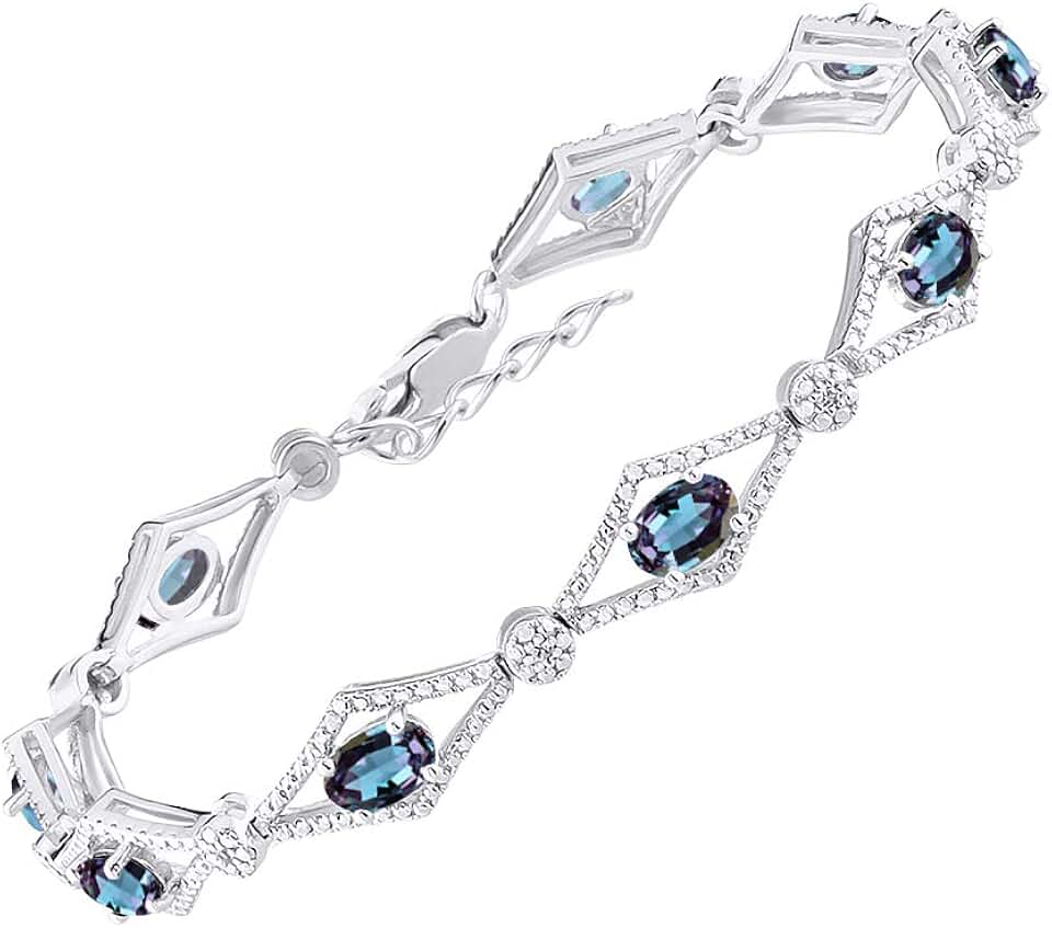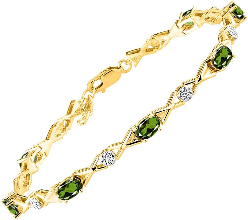 Rylos Women's 925 Sterling Silver Tennis Bracelet - Gemstone & Diamonds - Adjustable to Fit 7-8" Wrist - 9 Beautiful 6X4MM Birthstone Options - Stunning Jewelry for Women - Friendship Bracelets