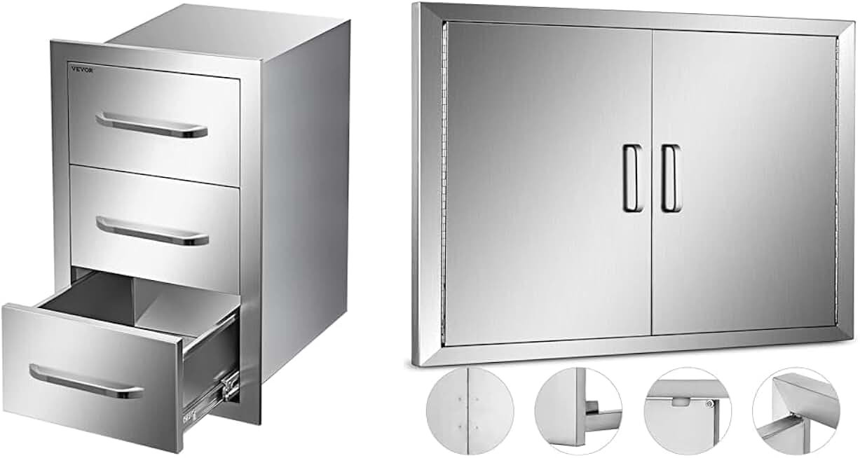 Mophorn Outdoor Kitchen Drawers 16" W x 28.5" H x 20.5" D, Flush Mount Triple Access & Mophorn BBQ Double Access Door 31W x 24H Inch, BBQ Door Stainless Steel Wall Construction Vertical, Outdoor