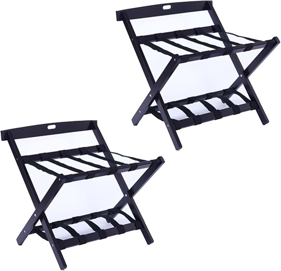 Luggage Rack 2 Pack - Suitcase Stand Foldable, Suitcase Stand with Nylon Straps, Solid Wooden Hotel Luggage Rack,Travel Bag Guest Room Storage Shelf, Suitcase Luggage Rack With Storage Shelf (Col