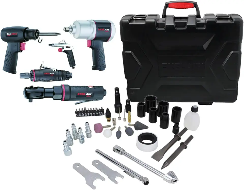 EXELAIR by Milton 50-PC Light-weight Composite Automotive Air Tools with High Torque Impact Wrench, Ratchet, Die Grinder, Air Hammer & Blow Gun