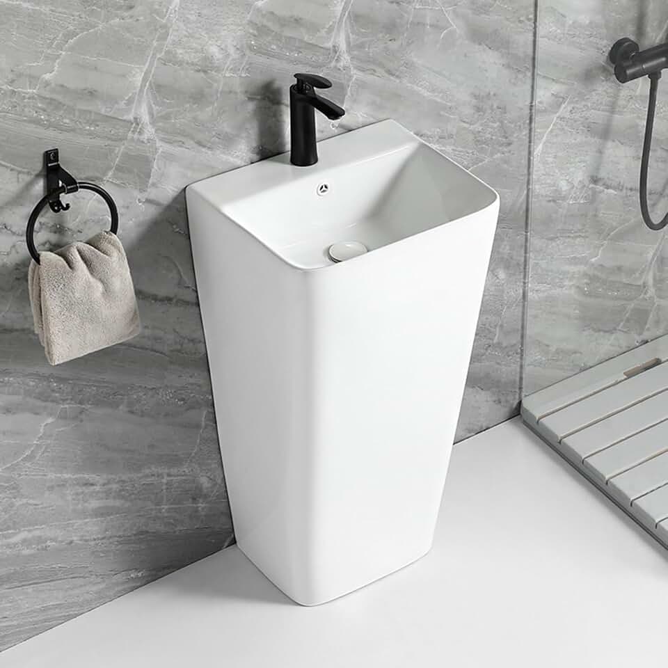 One Piece Freestanding Pedestal Sink, Ceramic Pedestal Sink For Bathroom, with Overflow and Faucet, Bathroom Pedestal Sink, Home Balcony Outdoor