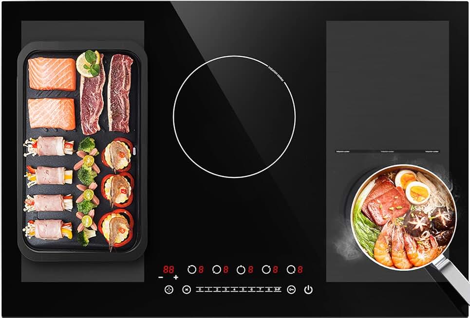 Induction Cooktop 30 inch,Electric Cooktop 5 Burners 9000W 220v,Electric Stove Top Countertop and Built-in with 2 Bridge Zones,9 Heating Levels,Hardwired, no Plug,suitable for Magnetic Cookware