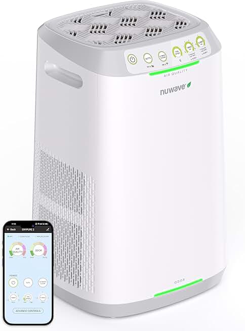Nuwave OxyPure ZERO Air Purifiers for Home Large Room Bedroom Up to 966ft², 20Yr Washable Bio Guard Filter, Air Quality and Odor Sensor, Smart WiFi, 17dB, 100% Removes Particles 3x Smaller Than HEPA