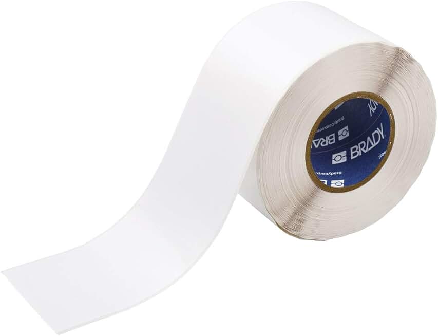Brady THT-107-423 4" Width x 300' Height, B-423 Permanent Polyester, Gloss Finish White Thermal Transfer Printable Label