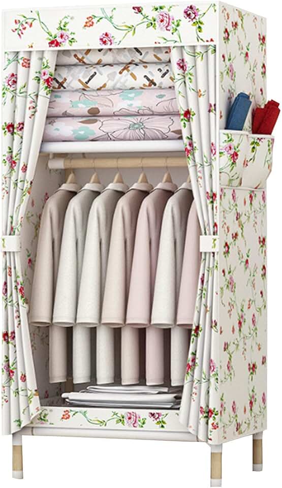 Wardrobe Portable Canvas Wardrobes Shelves,Foldable Closet with Hanging Rail and Side Pockets,Clothes Closet Storage Organizer for Clothes,Bags,B-65X45X155CM