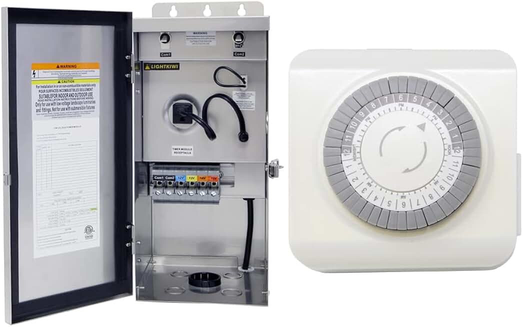 600 Watt Multi-Tap (12V-13V-14V-15V) Low Voltage Landscape Lighting Transformer with Mechanical Timer, Weatherproof for Pathway, Spotlight and Outdoor Landscape Lighting, ETL Listed