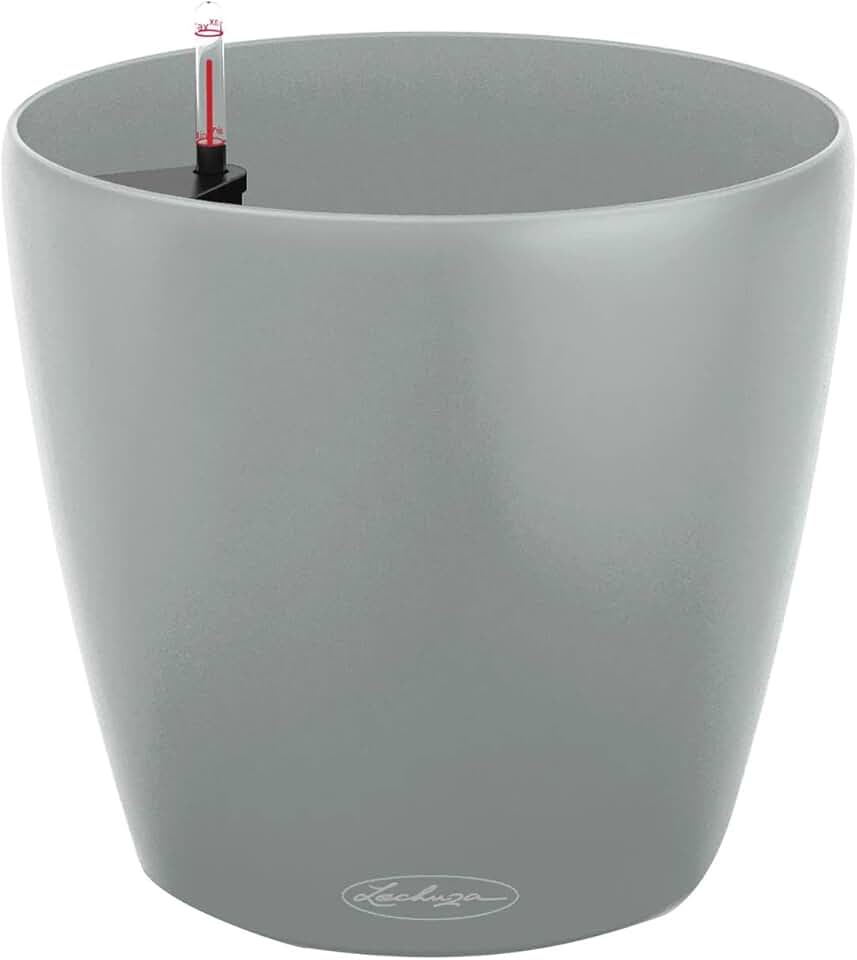 Lechuza CLASSICO Color ECO 60 Light Grey PCR Plastic Floor Self-watering Planter with Water Level Indicator D60 H55.5 cm, 90L