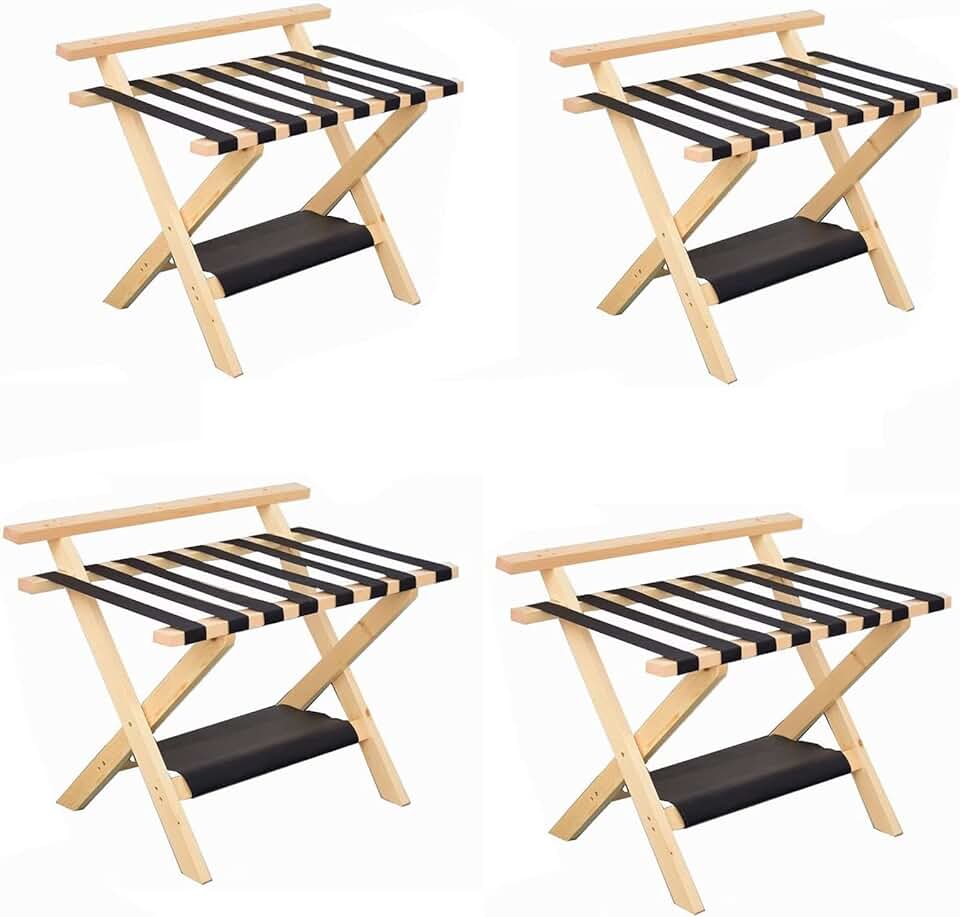 Luggage Rack Set of 4, Foldable Clothes Storage Shelf with Shoe Shelf, Solid Wood Storage Shelf, Double Layer Travel Bag Storage Rack, Practical Household Suitcase Stand (Color : B) (A)