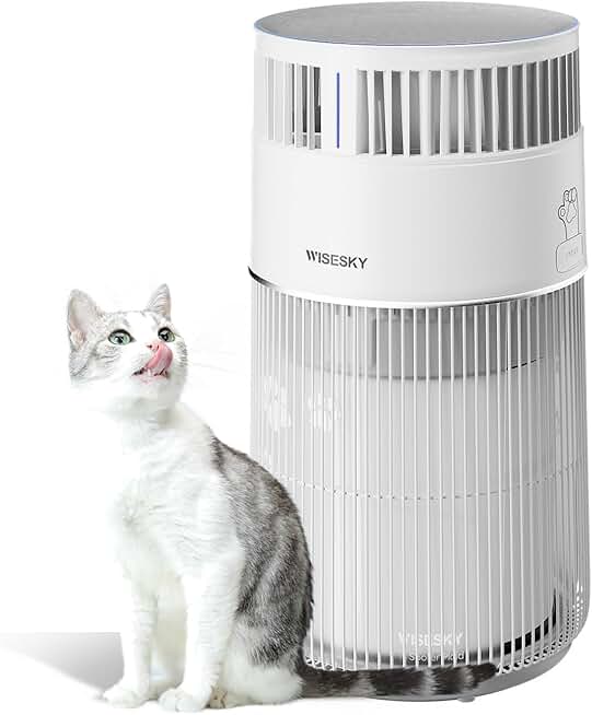 Air Purifier for Home Cat Hair Pee Smell in Bedroom, Cat Safety by 24 Voltage, 360° Air Inlet, 3 in 1 HEPA Filter Removes Dust, Dander, Odor, Smart APP Control, 23dB Sleep Mode, W-Cat, White