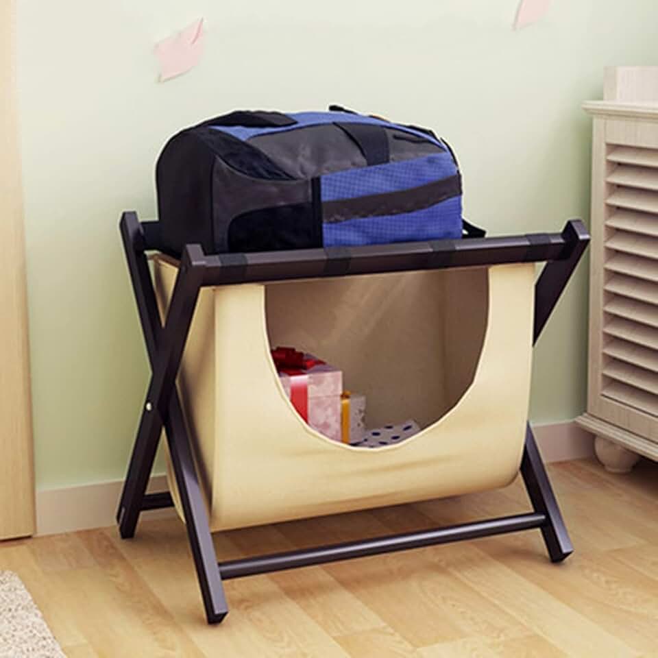 Luggage Rack Black - Suitcase Stand, Black Solid Wood Travel Bag Organizer for Hotel Rooms, Extended Foldable Suitcase Rack with Shoe Rack, Clothes Storage Bags, 63X45X50CM (Size : 1pcs) ( 1pcs)