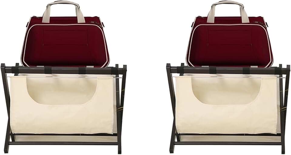 Luggage Rack - Suitcase Stand Wood, with Cloth Pockets Foldable Suitcase Holders, Clothes Storage Bags with Shoe Rack, Black Solid Wood Travel Bag Organizer for Hotel Rooms,63X45X50CM (Size : 2pc