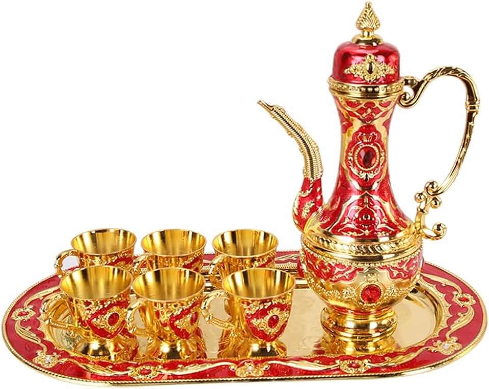 Wine Pot Metal Wine Pot Glass Creative Alloy Wine Set Gift Home Furnishings(white-Dinosaur Doodle4)