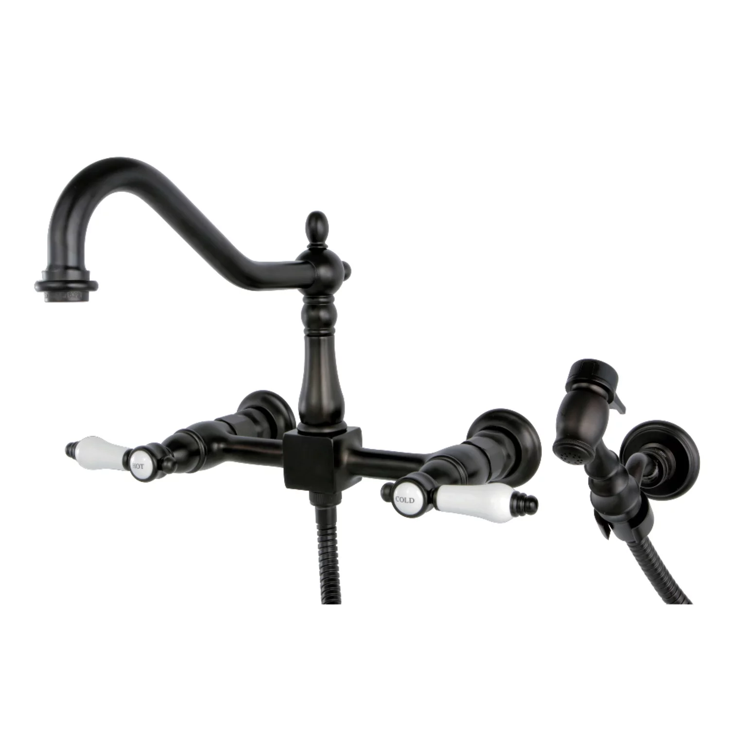 Kingston Brass KS1245PKLBS Duchess Wall Mount Bridge Kitchen Faucet with Brass Spray, Oil Rubbed Bronze