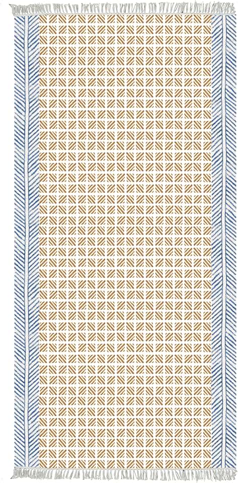 12' Square Rug Kilim Rug Brown & Blue Cotton Dhurrie Washable Rug Indoor Outdoor Rug Flatweave Rug High Traffic Area Bedroom Bedside Custom Mat Dining Table Doormat