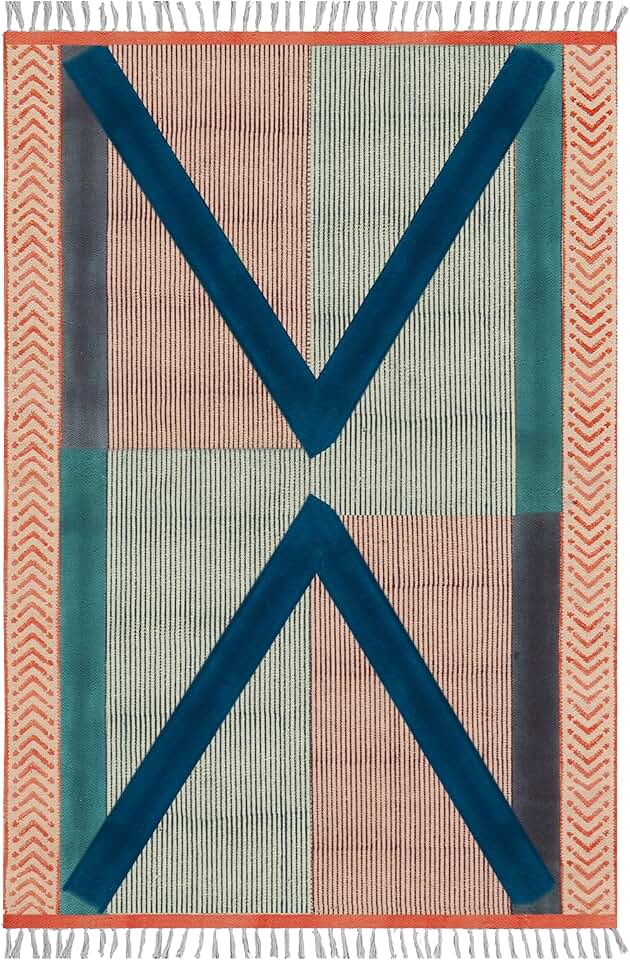Area Rug 10x18 Kilim Rug Handmade Boho Rug Geometric Rug Black Blue Cotton Area Rug Easy Washable Rug Flatweave Rugs for Large Area Bedroom Rug Living Room Dining Table Room