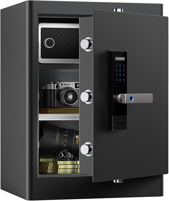 RPNB Deluxe Home Safe and Lock Box,Smart Touch Screen Biometric Fingerprint Security Safe Box with Voice Prompt,One-touch Unlock,Interior Box,Dual Warning,Suitable for Home Office Hotel,2.8 Cubic Feet