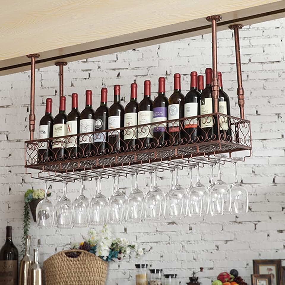 Wine Racks Ceiling-Type Wine Bottle Holder Hanging Wine Glass Racks Goblet Stemware Racks Floating Wine Shelf,Vintage Home Decor/100 * 25Cm
