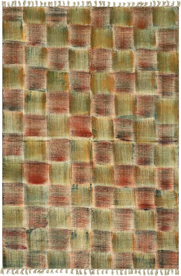 Kilim Rug 8x10 Area Rug Green & Red Cotton Dhurrie Indoor Outdoor Rug Flatweave Rug High Traffic Area Lake House Bedroom Dining Room Living Room
