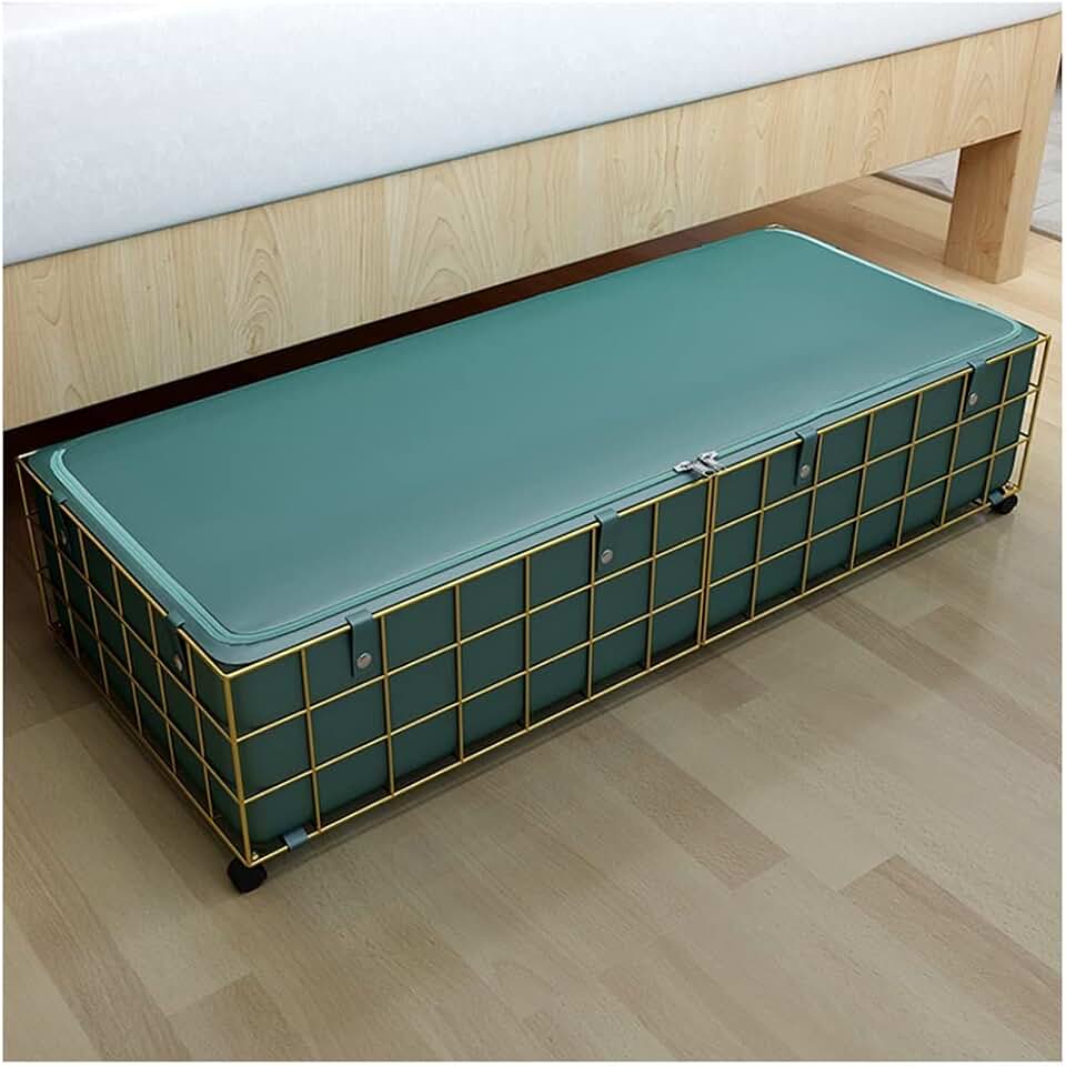 Under Bed Storage Containers with Wheels, 2-in-1 Rolling Under Bed Storage Containers with Liner Bags, Leather Storage Box, for Bedroom, Living Rome Clothes, Toy, Book, Blanket (Size : Large)