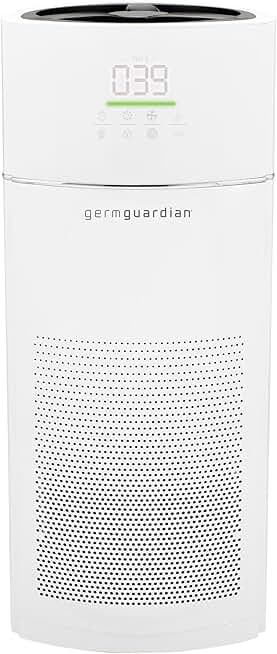 GermGuardian Hi-Performance Air Purifier with HEPA Filter, Removes 99.97% of Pollutants, Covers Large Rooms up to 1943 Sq. Foot Room in 1 Hour, Air Quality Sensor, 3 Speeds, Timer, 28", White, AC9400W