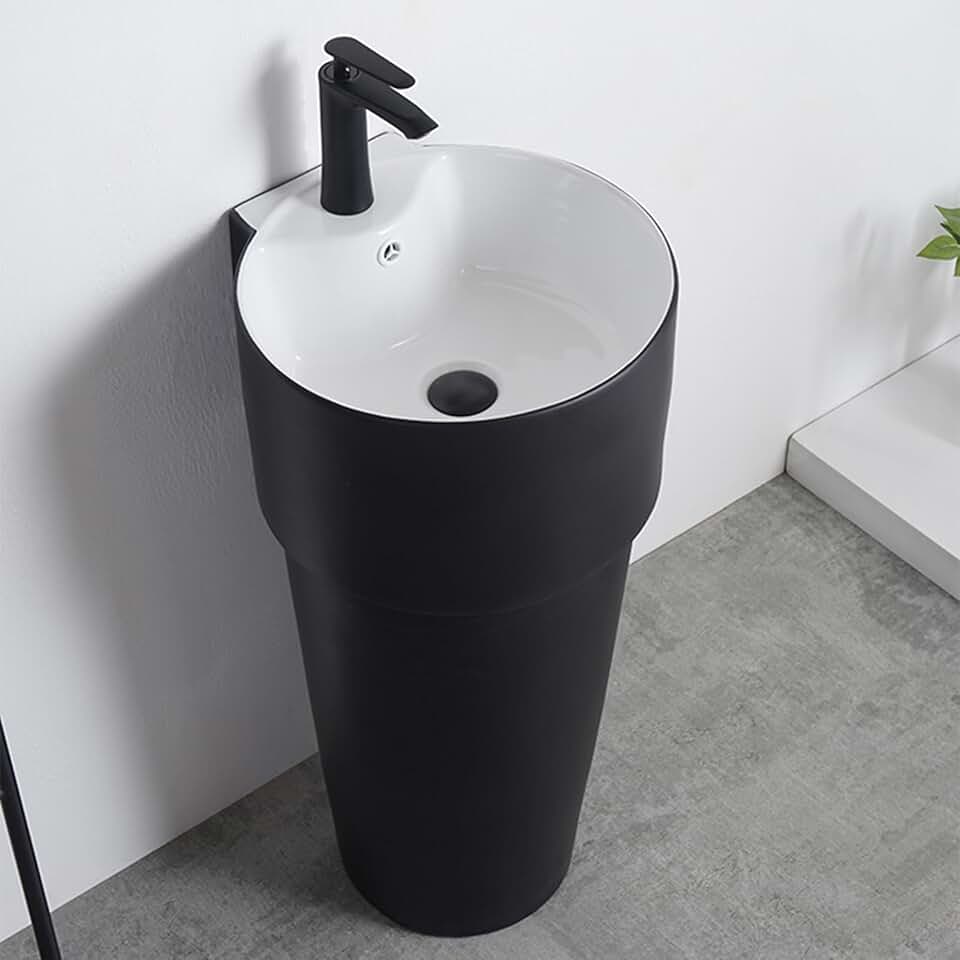 Pedestal Sink, Ceramic Bathroom Pedestal Sink, Pedestal Bathroom Sink with Overflow, Traditional Pedestal Bathroom Sink, Powder Room Basin (Color : Black)