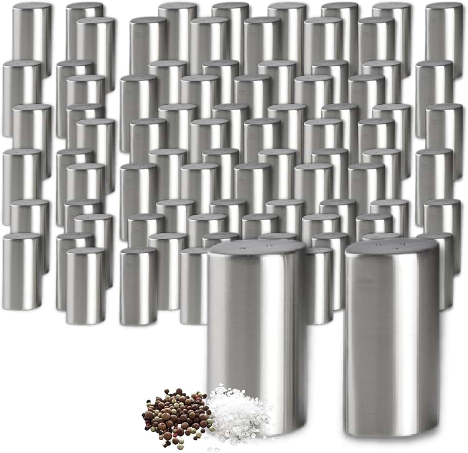 International 7600CV002 Stainless Steel Salt & Pepper, Modern Tabletop Brushed Oval Metal Seasoning Dispenser Bulk Set, 2.5" Tall, 48 Pairs