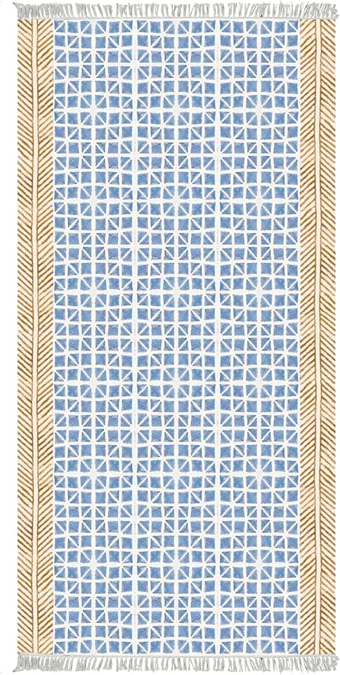 8x10 Area Rug Kilim Rug Blue & Brown Cotton Dhurrie Washable Rug Indoor Outdoor Rug Flatweave Rug High Traffic Area Lake House Bedroom Dining Room Living Room