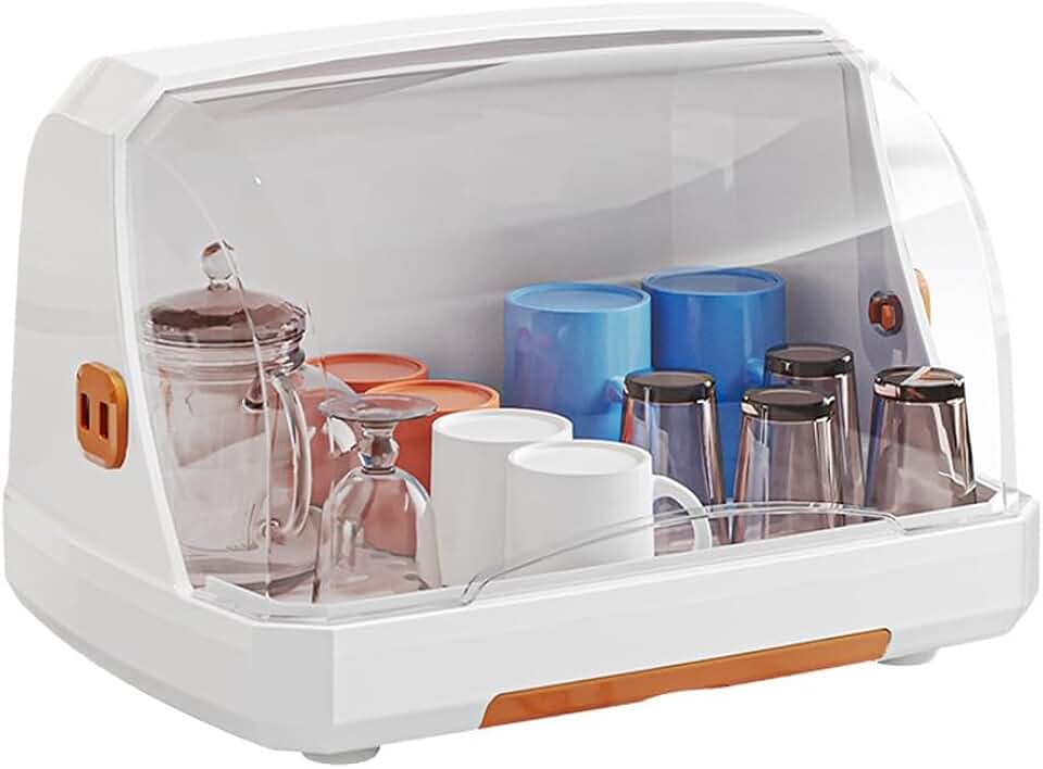 Desktop Cup Storage Rack Dish Bowl Drying Rack Drainer Dustproof Cup Holder Tableware Storage Box with Lid (Color : As Shown, Size : 37 * 26 * 23cm)