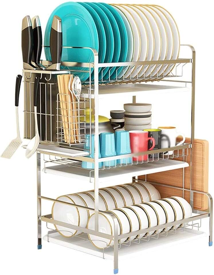 3 Layer Stainless Steel Cutlery Storage Shelf Dish Rack Kitchen Drain Storage Knife Chopping Board Holder Home Supplies