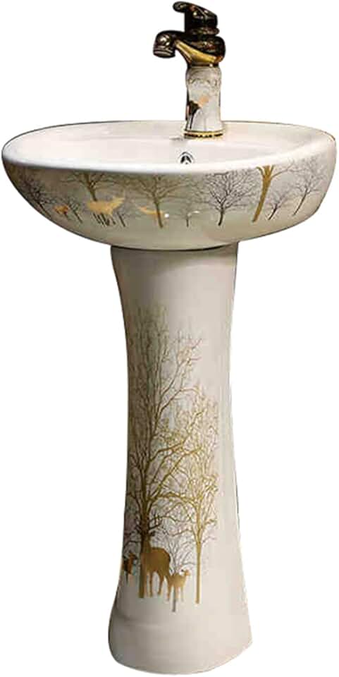 Pedestal Sink, Ceramic Pedestal Sink for Bathroom, Pedestal Bathroom Sink with Overflow, Floor-standing Countertop Basin For Cloakroom Balcony
