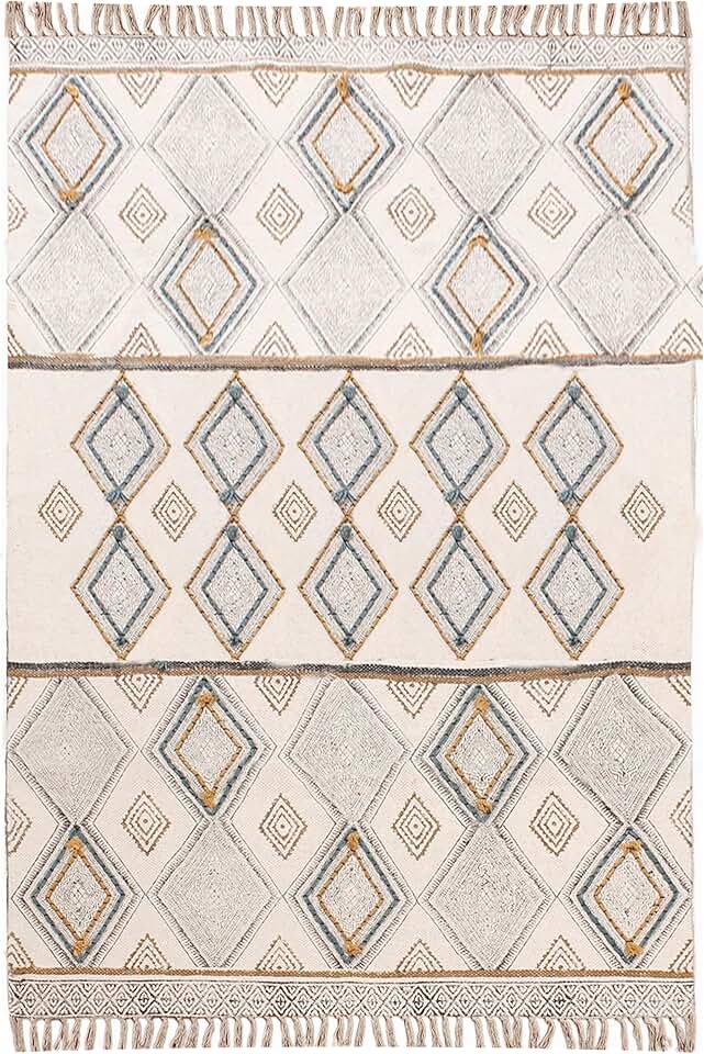 8x10 Area Rug Kilim Rug Handmade Boho Rug Moroccan Rug Easy Washable Rug Grey Beige Cotton Area Rug Flatweave Rugs for Large Area Bedroom Rug Living Room Dining Table Room