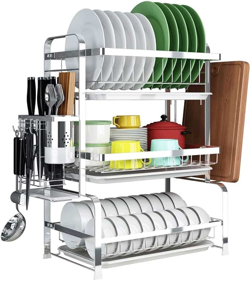 3 Layer Stainless Steel Cutlery Storage Shelf Dish Rack Kitchen Drain Storage Knife Chopping Board Holder Home Supplies
