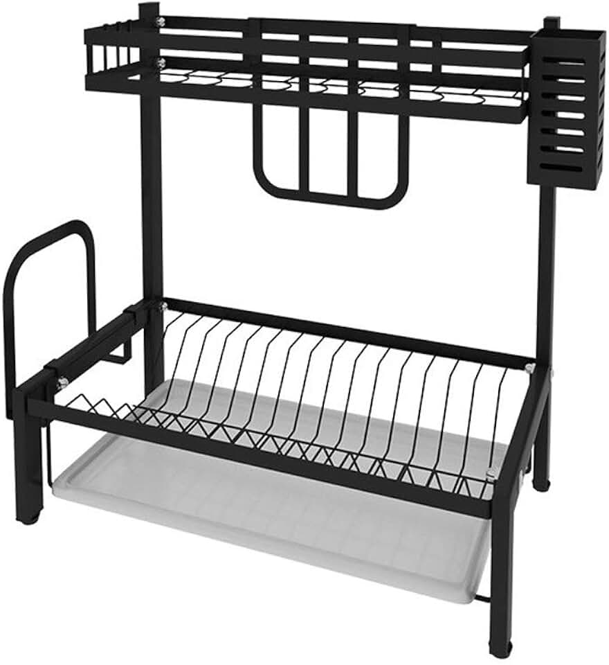 GYLXW Kitchen Drain Rack Chopsticks Dish Rack,Plastic Dish Rack with Drain Board and Utensil Cup(E)