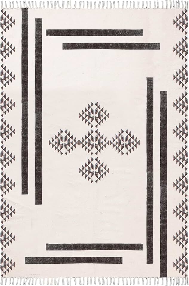 Kilim Rug 12x15 Area Rug Boho Rug Beige Black Cotton Area Rug Easy Washable Rug Flatweave Rugs for Large Area Bedroom Rug Living Room Dining Table Room