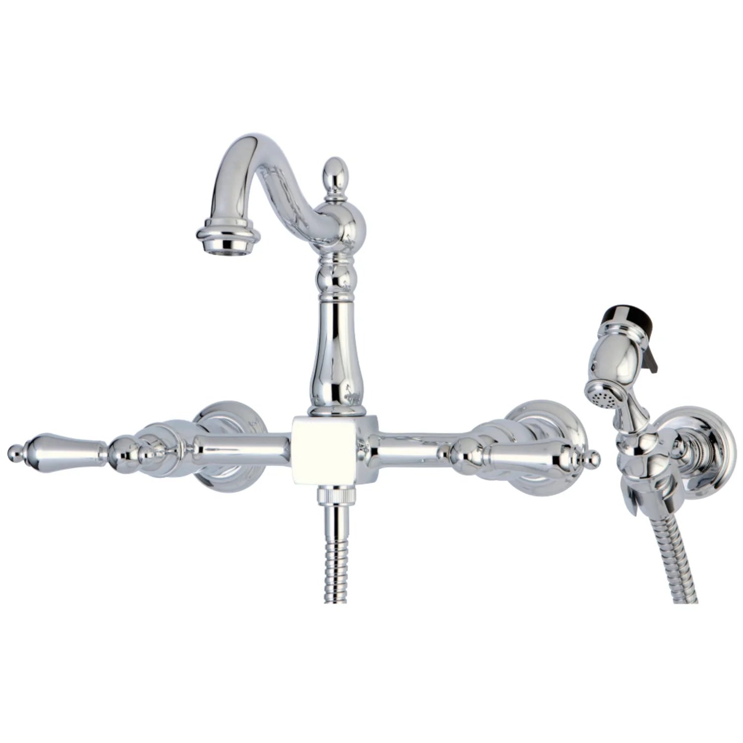 Kingston Brass KS1261ALBS Heritage Wall Mount Bridge Kitchen Faucet with Brass Sprayer, Polished Chrome