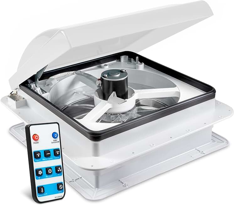 Hike Crew 14” RV Roof Vent Fan w/Remote | 12V 6-Speed Intake & Exhaust Camper Fan | Auto Temperature, Rain Sensor & Electronic Open/Close | Includes Screws & Garnish | White Lid