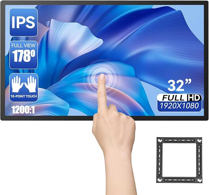 32 inch Monitor Capacitive Touch Screen Industrial Advertising Screen, 16:9 Display 1920 x 1080P, Built-in Speakers, USB VGA DVI Ports, Digital Signage Displays with Stylus Pen and Mount
