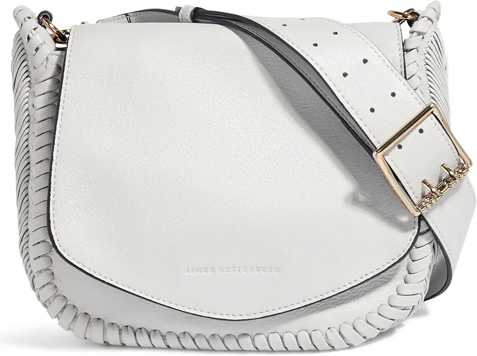 Aimee Kestenberg All For Love Saddle Crossbody Bag for Women - Small Leather Crossbody Purse - Adjustable & Removable Strap - Cloud with Shiny Gold